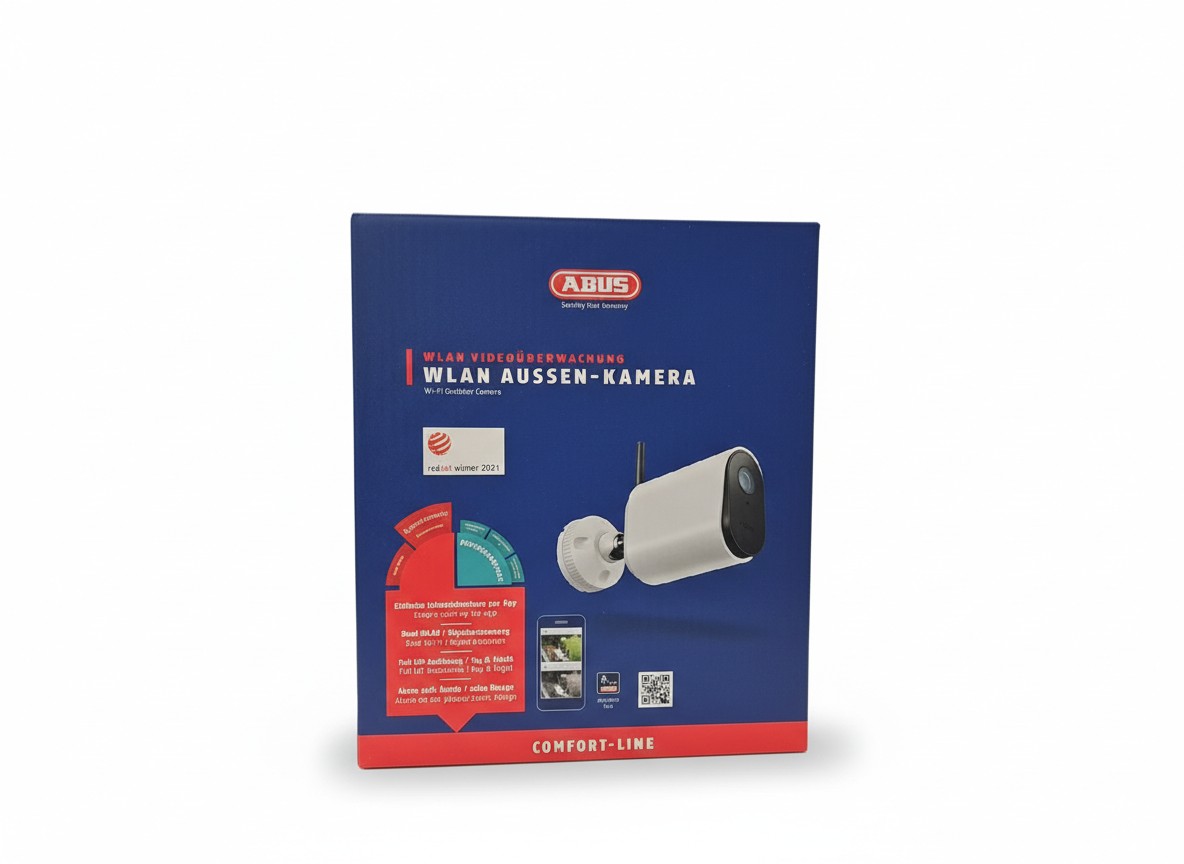 Kompakte, wetterfeste WLAN Außen-Kamera der ABUS Comfort-Line in Weiß, ausgezeichnet mit dem Red Dot Winner 2021 Designpreis. Die Kamera bietet einfache Inbetriebnahme via App-Assistent und ist sofort aufnahmebereit. Sie ist kompatibel mit der Smartvest Funk-Alarmanlage.