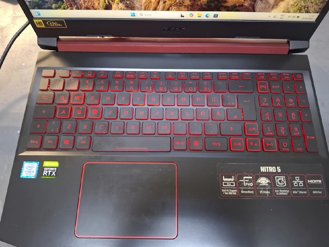 Acer Nitro 5 AN515-54 Schwarz, 15.6 Zoll, i5-9300H, RTX 2060 6GB, 12GB RAM, 512GB SSD, Gaming-Laptop | Zustand: Gut