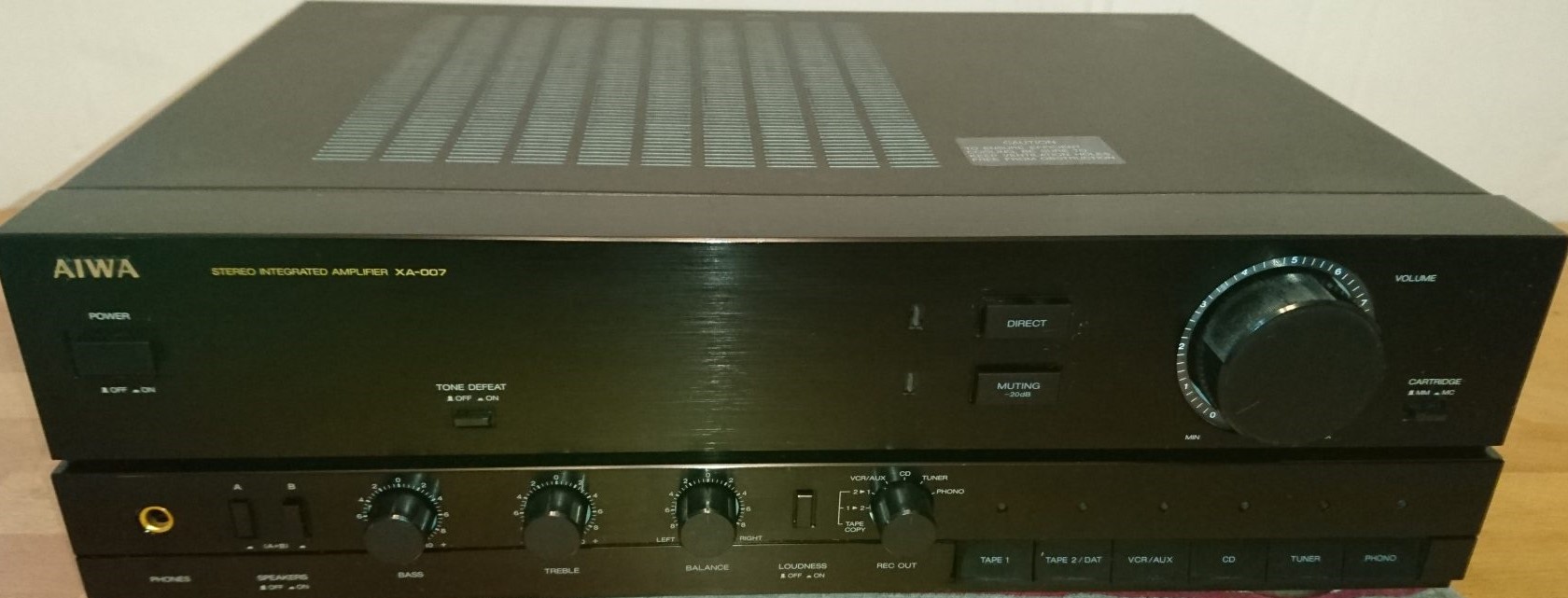 Der Aiwa XA-007 ist ein schwarzer Stereo-Vollverstärker, der für seine gute Klangqualität und vielseitigen Anschlussmöglichkeiten bekannt ist. Er bietet eine Ausgangsleistung von 2x80W an 8 Ohm und verfügt über einen Phono-Eingang, der sowohl Moving Magnet (MM) als auch Moving Coil (MC) Tonabnehmersysteme unterstützt. Zusätzliche Funktionen wie Klangregelung (Bass/Höhen), Loudness und eine Source-Direct-Funktion erhöhen die Flexibilität.