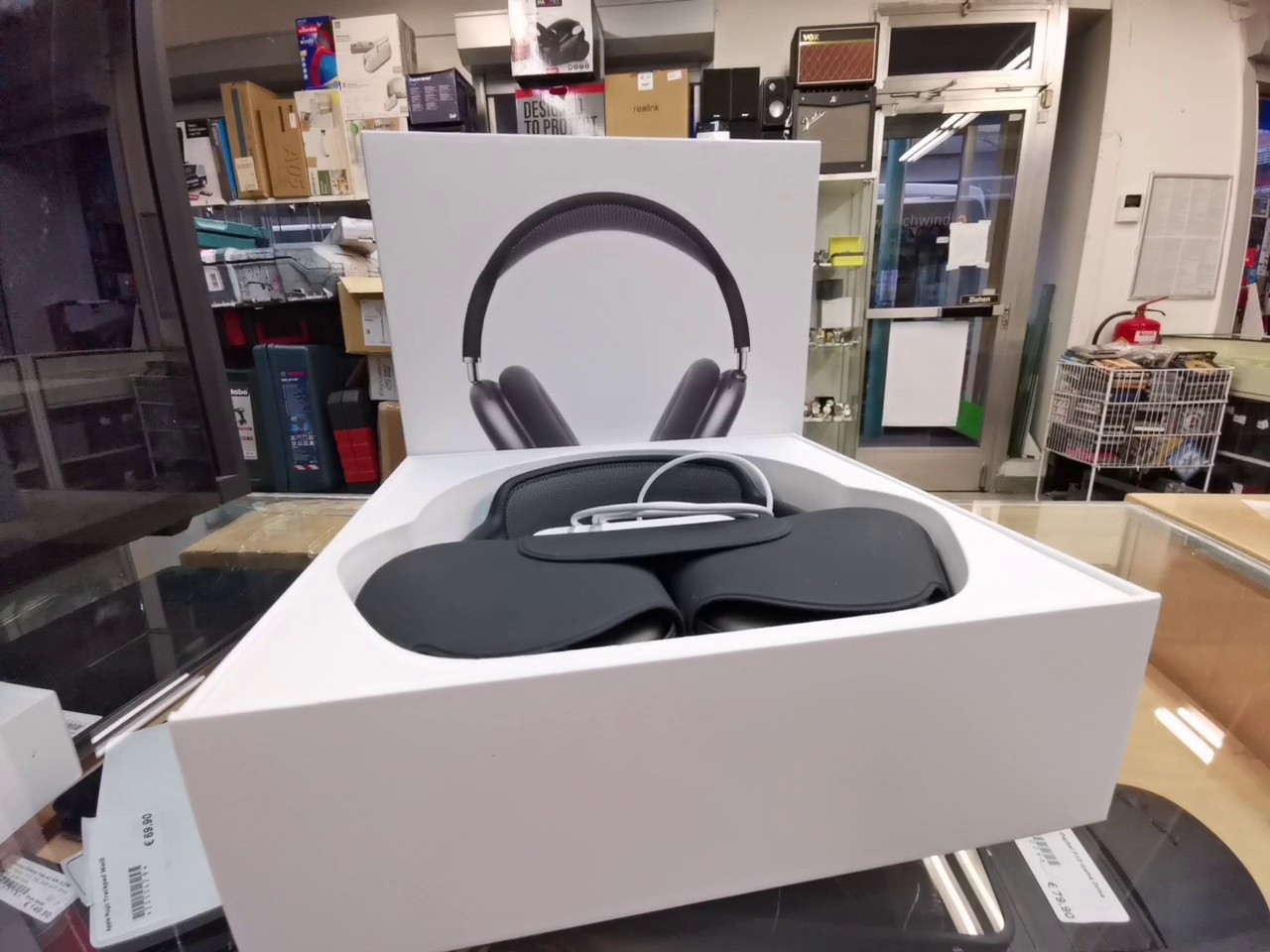 - Sensoren: Optischer Sensor, Positionssensor, Case-Erkennungssensor, Beschleunigungssensor, Gyrosensor (in der linken Hörmuschel)