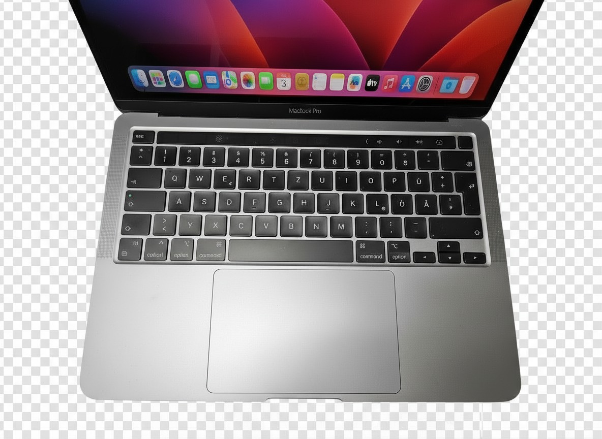Leistungsstarkes, kompaktes Apple MacBook Pro 13 Zoll aus dem Jahr 2020 in Silber, angetrieben durch den revolutionären Apple M1 Chip. Dieses Modell bietet eine hervorragende Balance aus Mobilität und Performance für anspruchsvolle Aufgaben. Der Zustand des Akkus liegt bei 96% mit lediglich 125 Ladezyklen, was auf eine geringe Nutzung hindeutet.