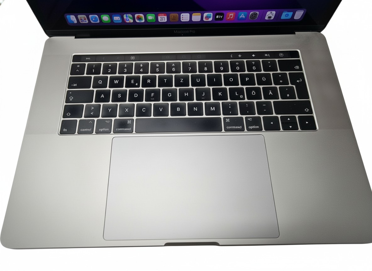 Leistungsstarkes Apple MacBook Pro 15 Zoll (Modell A1707) aus dem Jahr 2017 mit Touch Bar und Touch ID. Dieses Modell bietet eine schnelle Performance für anspruchsvolle Aufgaben dank des Intel Core i7 Prozessors und 16 GB Arbeitsspeicher, kombiniert mit einer großzügigen 1TB SSD für schnellen Speicherzugriff. Das brillante 15,4 Zoll Retina Display sorgt für gestochen scharfe Bilder. Das Gerät weist leichte Gebrauchsspuren auf.