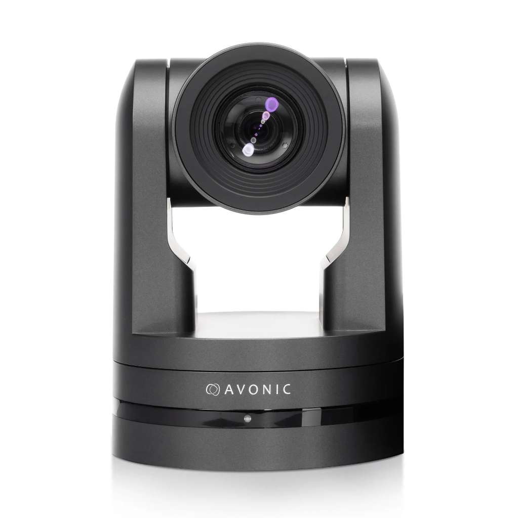 Die Avonic AV-CM70-IP-B ist eine hochwertige PTZ-Kamera in Schwarz, die sich ideal für Festinstallationen eignet, insbesondere bei suboptimalen Lichtverhältnissen. Sie wird mit einer Fernbedienung und Kabeln geliefert.