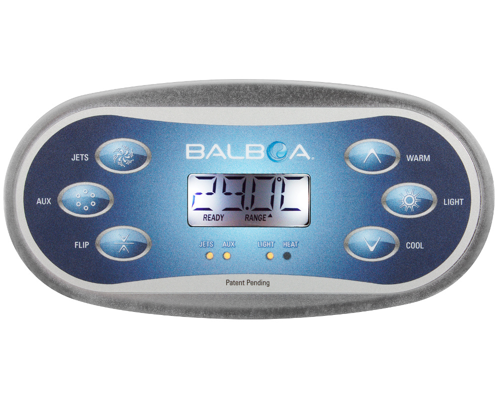 Das Balboa TP600 ist ein 6-Tasten-Bedienfeld zur intuitiven Steuerung von Whirlpoolsystemen, die mit Balboa BP-Steuerungen kompatibel sind. Es verfügt über einen gut ablesbaren High-Tech-Digitalbildschirm zur Anzeige relevanter Informationen wie der aktuellen Temperatur. Das Bedienfeld ermöglicht die präzise Ansteuerung von Pumpen (Jets), Beleuchtung und Zusatzfunktionen (AUX) sowie die einfache Einstellung der gewünschten Wassertemperatur. Es ist robust und für den Einsatz in feuchten Umgebungen konzipiert.