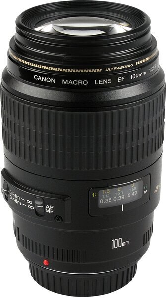Das Canon EF 100mm f/2.8 USM Macro ist ein vielseitiges Tele-Makro-Objektiv für Canon EOS Kameras mit EF-Anschluss. Es ermöglicht gestochen scharfe Aufnahmen im Nahbereich bis zum Maßstab 1:1 (lebensgroße Abbildung) und eignet sich dank seiner Brennweite auch hervorragend als Porträtobjektiv, da es bis unendlich fokussieren kann. Der Ultraschallmotor (USM) sorgt für einen schnellen und nahezu geräuschlosen Autofokus, während die Innenfokussierung die konstante Baulänge und die einfache Verwendung von Zubehör wie Makro-Ringblitzen gewährleistet. Die fortschrittliche optische Konstruktion mit drei frei schwebenden Gruppen minimiert Abbildungsfehler über den gesamten Fokusbereich von Nahaufnahme bis Unendlich.