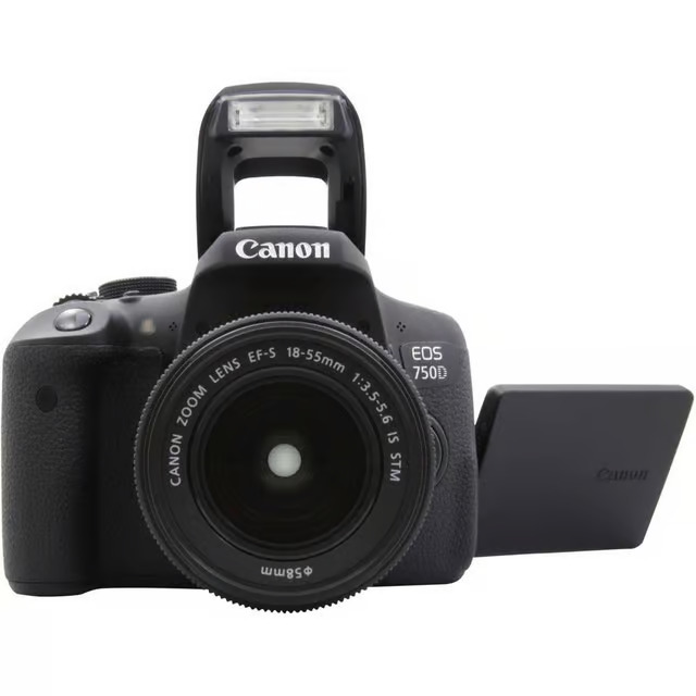 Die Canon EOS 750D ist eine digitale Spiegelreflexkamera (DSLR) mit einem 24,2-Megapixel-CMOS-Sensor im APS-C-Format. Sie wird oft im Kit mit dem EF-S 18-55mm f/3.5-5.6 IS STM Objektiv angeboten.