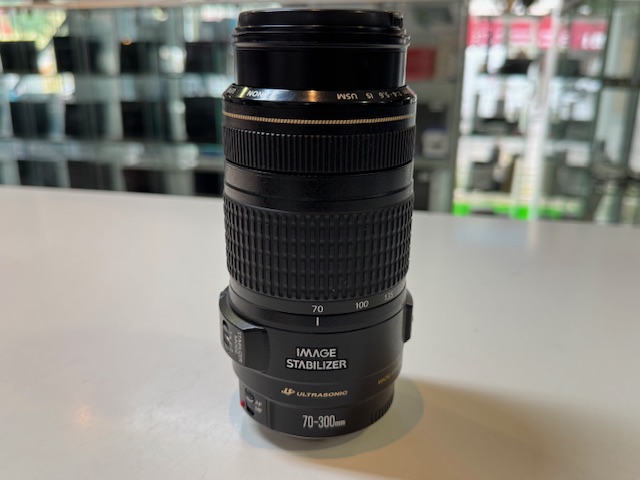 Das Canon EF 70-300mm f/4-5.6 IS USM ist ein Telezoomobjektiv, das sich gut für Natur- und Sportfotografie eignet. Es bietet einen dreistufigen Bildstabilisator (IS) zur Reduzierung von Verwacklungsunschärfe und einen Ultraschallmotor (USM) für schnellen und leisen Autofokus.