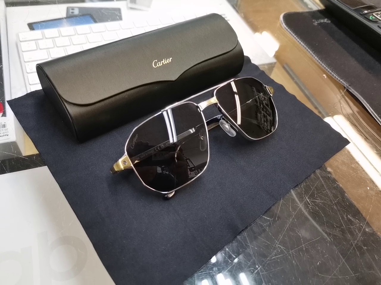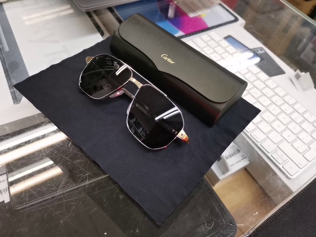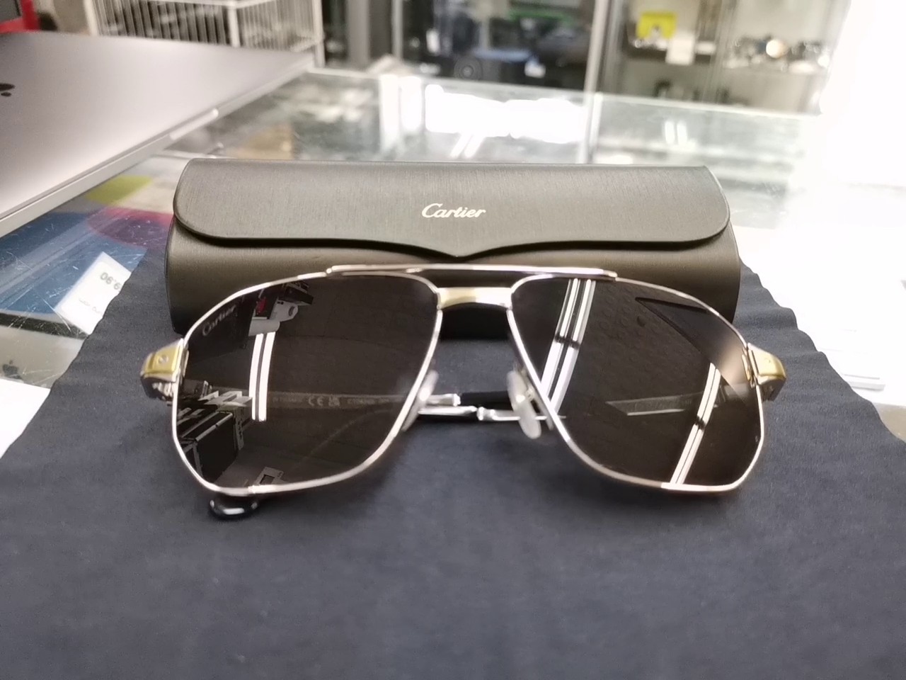 - Weitere Merkmale: Verstellbare Nasenpads mit Cartier-Emblem, Santos-Schrauben-Akzente, Antireflexbeschichtung