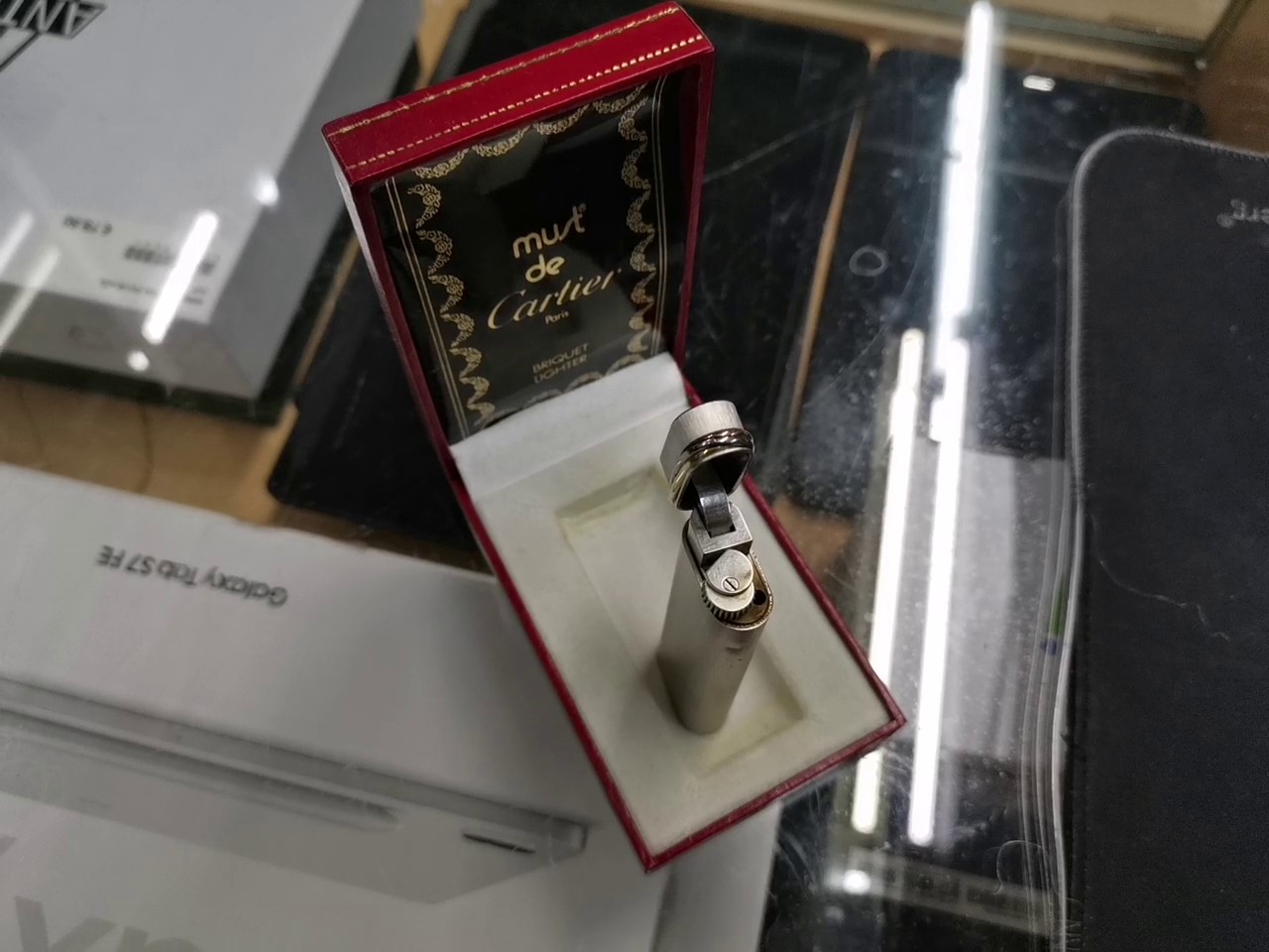 Cartier Must de Cartier Feuerzeug Silber, Vintage Feuerzeug, gebürstetes Silber-Finish, inklusive Originalverpackung (OVP), guter Zustand. | Zustand: Sehr Gut