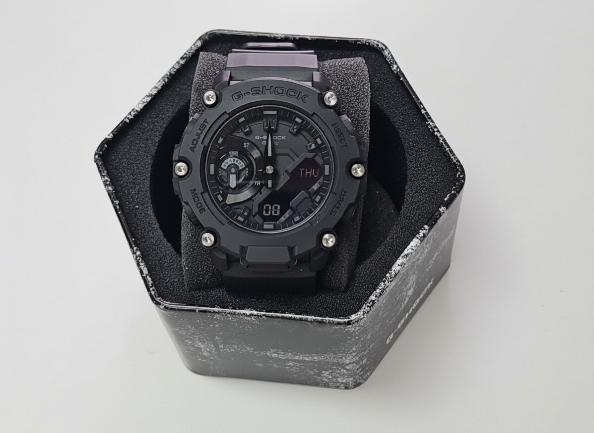 Die Casio G-Shock GA-2200BB-1AER ist eine robuste, schlanke Analog-Digital-Uhr in Stealth-Schwarz, die durch die Carbon Core Guard Struktur für erhöhte Stoßfestigkeit optimiert wurde. Das Design zeichnet sich durch eine dreiteilige Konstruktion aus, die Lünette, Gehäuseboden und Tasten integriert, um das Gehäuse schlank zu halten. Die Uhr bietet eine beeindruckende Wasserdichtigkeit von 20 Bar (200 Meter) und ist ideal für Abenteuer und den täglichen, anspruchsvollen Einsatz.