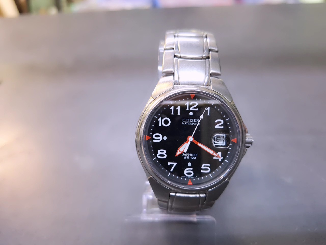 Diese klassische Citizen Automatic Uhr überzeugt durch ihr zuverlässiges Automatikwerk und ein robustes Design. Ausgestattet mit einem kratzfesten Saphirglas und einer praktischen Datumsanzeige mit Lupe, ist sie ein idealer Begleiter für den Alltag. Bitte beachten Sie, dass dieses Modell Gebrauchsspuren in Form von Kratzern an der Datums-Lupe sowie am Armband aufweist.