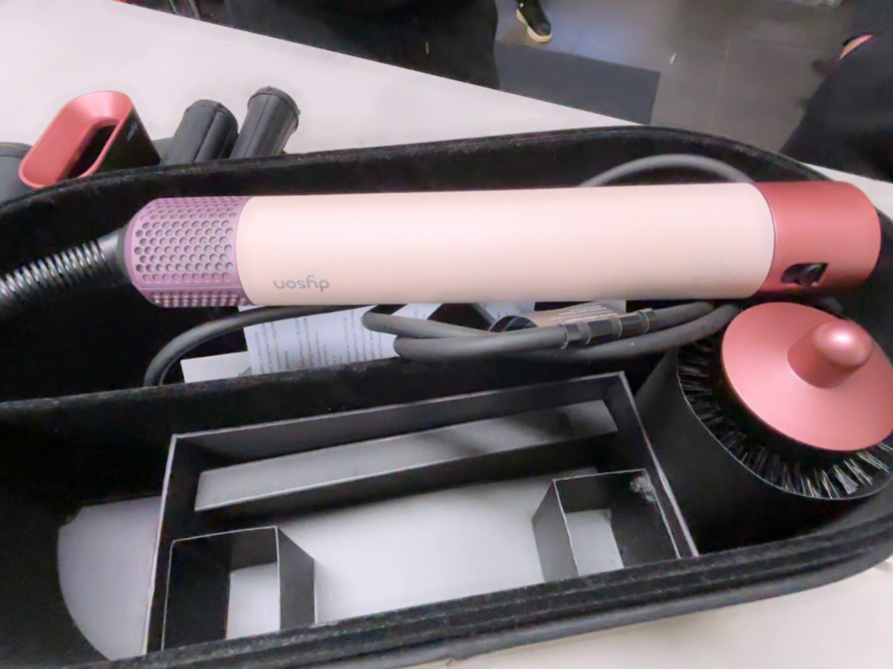 Der Dyson Airwrap Multi-Styler in Ceramic Pink/Rose Gold nutzt die Coanda-Technologie, um Haar durch Luft zu stylen, Locken zu formen, Wellen zu kreieren, zu glätten, Volumen zu verleihen und abstehende Härchen zu bändigen alles ohne extreme Hitze. Dieses Modell verfügt über 1300W Leistung und ist mit 5 Aufsätzen sowie einer Aufbewahrungsbox ausgestattet. Es ist der einzige Multi-Styler, der Hitze, Luftstrom und Zeit intelligent an den Haartyp anpasst und sich über Bluetooth® mit der MyDyson“! App verbinden kann.