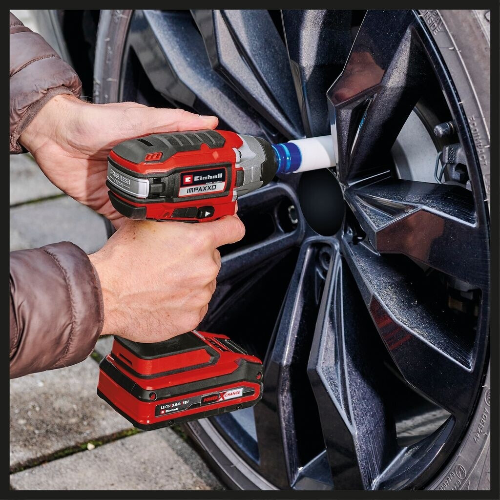 Der Einhell Akku-Schlagschrauber IMPAXXO 18/230 Solo ist ein kraftvolles und langlebiges Werkzeug für den Fahrzeugwartungsbereich, ideal zum Lösen von Radmuttern oder Eindrehen langer Schrauben. Er wird von einem wartungsfreien PurePOWER Brushless Motor angetrieben, der für höchste Leistung und längere Laufzeit sorgt und auf den 10 Jahre Garantie nach Online-Registrierung gewährt werden. Das Gerät ist Mitglied der Power X-Change Familie und nutzt die 18V Akkus dieser Serie.