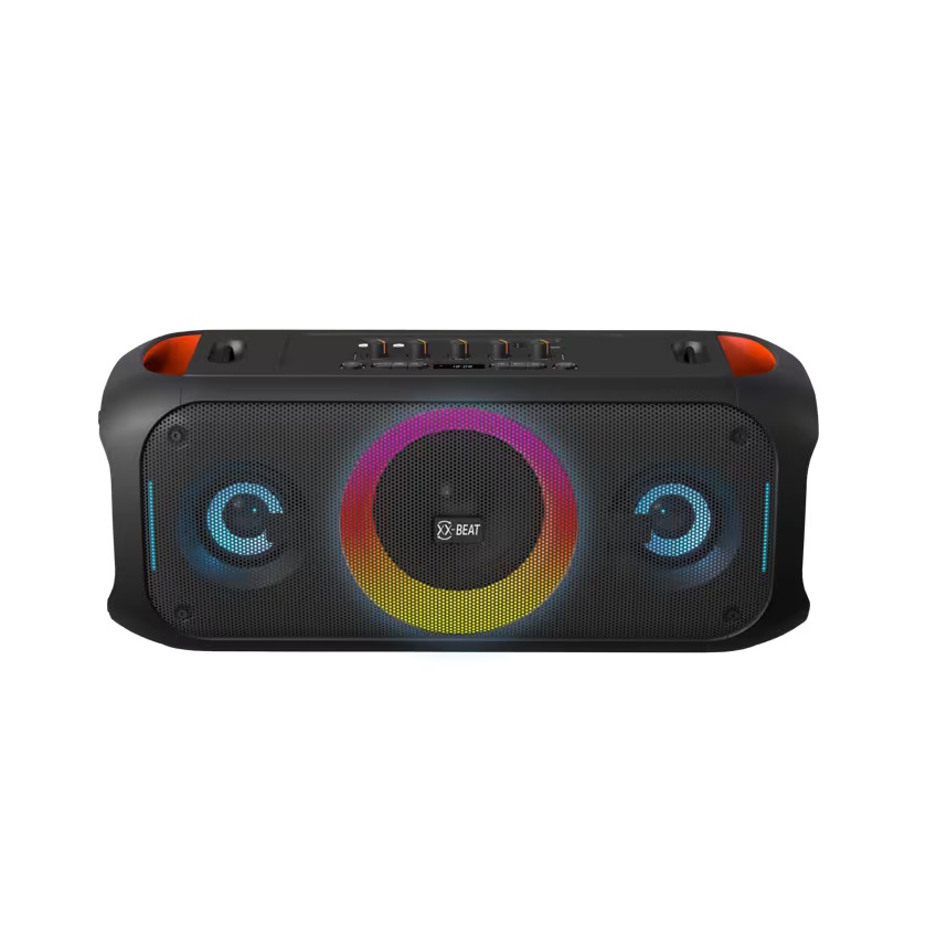 Der Felixx X-beat Ghetto ist ein kraftvoller Bluetooth-Lautsprecher mit 75W Leistung. Er verfügt über eine integrierte LED-Lichtshow, die sich mit dem Beat der Musik synchronisiert. Mit dem mitgelieferten Tragegurt und dem eingebauten Akku ist er ideal für Partys und den Einsatz im Freien.