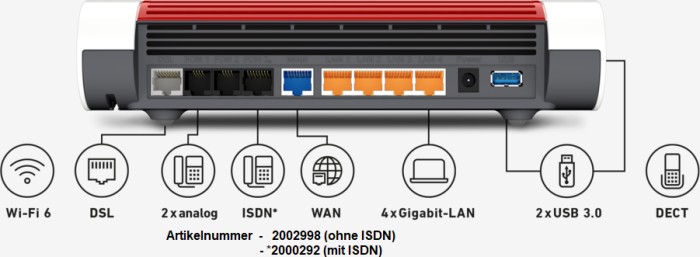 Wichtig: Die hier beschriebene Version ist „ohne ISDN A/CH“. Das bedeutet, dass sie im Gegensatz zu anderen 7590 AX-Modellen keinen ISDN-Anschluss besitzt und speziell für den Schweizer Markt (A/CH) konzipiert ist.