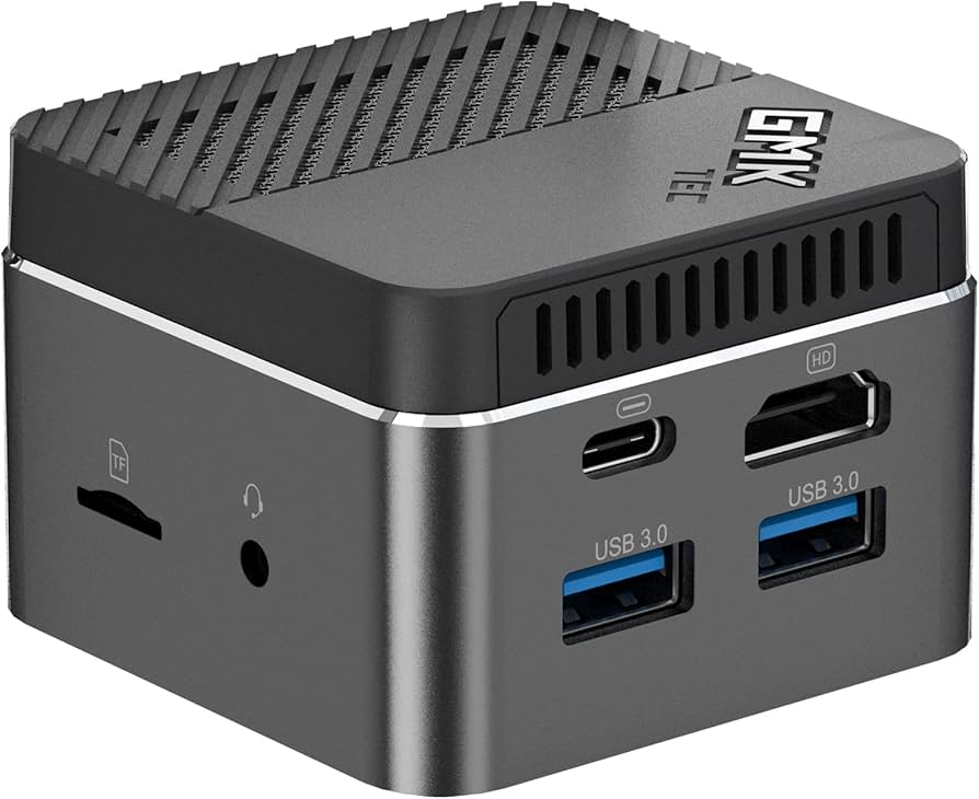 Kompakter Mini-PC mit Intel Celeron J4125 Prozessor, ideal für Office-Anwendungen, Home-Entertainment und als platzsparender Desktop-Ersatz. Das Gerät bietet schnelle Systemreaktion dank 8GB RAM und einer 256GB SSD. Es unterstützt 4K-Videoausgabe und verfügt über moderne Anschlussmöglichkeiten.