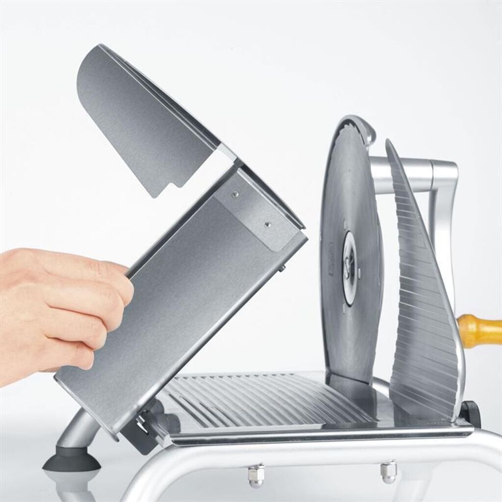 Der Graef Manuale H 9 ist ein handbetriebener Allesschneider im Retro-Design, gefertigt in Deutschland. Das Vollmetallgehäuse sorgt für Stabilität und Langlebigkeit.