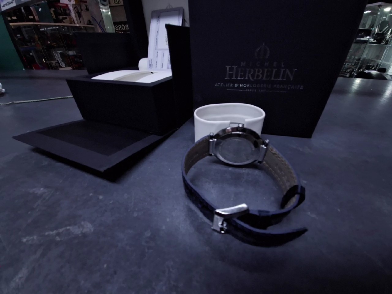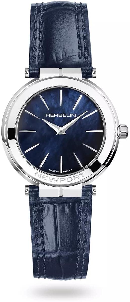 Neuwertige Herbelin Newport Slim Quarz Uhr mit blauem Zifferblatt und Lederarmband. Dieses elegante Herrenmodell zeichnet sich durch sein schlankes Design aus, inspiriert von nautischen Elementen.