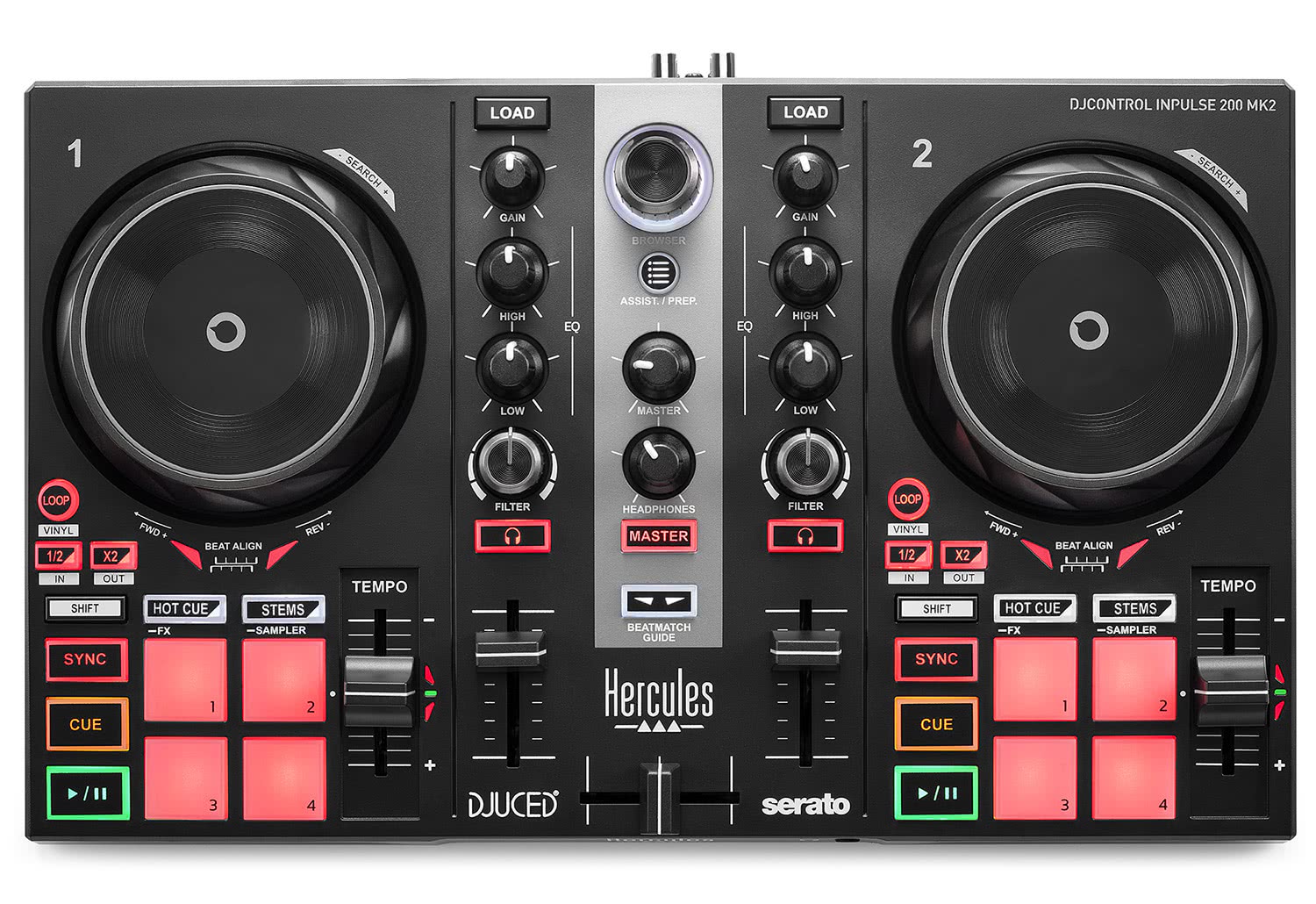 Der Hercules DJControl Inpulse 200 MK2 ist ein kompakter 2-Kanal-DJ-Controller, ideal für Einsteiger, der mit Serato DJ Lite und DJUCED ausgeliefert wird. Er bietet exklusive Funktionen wie STEMS zur Trennung von Musik-Elementen und den Beatmatch Guide mit integrierten Lichtführungen zur Unterstützung beim manuellen Synchronisieren von Tracks. Der Controller verfügt über Jogwheels mit Vinyl-Feeling und druckempfindlicher Oberfläche sowie 8 Performance Pads mit 4 Modi (Hot Cue, Roll, FX, Sampler) für kreative Übergänge. Zusätzlich unterstützt er Musik-Streaming-Dienste und bietet Zugang zur Hercules DJ Academy mit Video-Tutorials.