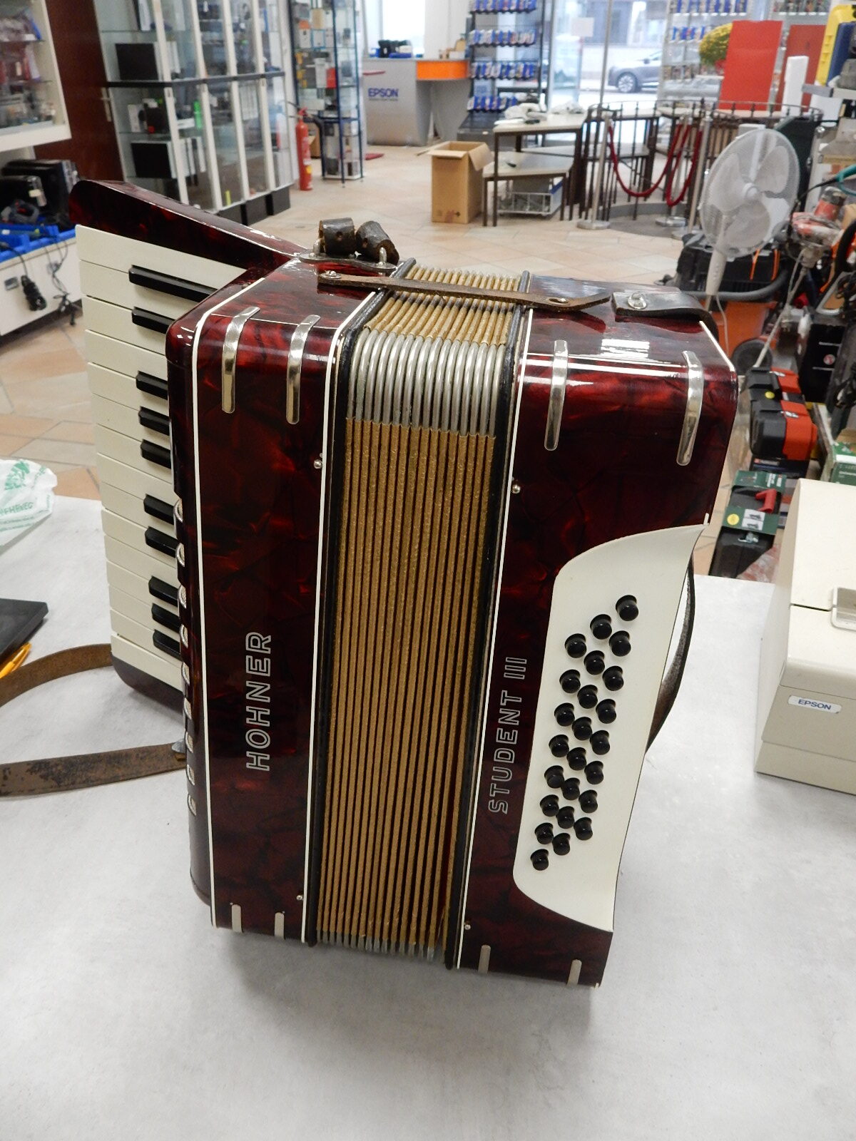 Das Hohner Student III Piano Akkordeon ist ein hervorragendes Einsteigerinstrument, das sich ideal für Anfänger eignet, um die Welt der Musik zu entdecken. Es ist oft in einer ansprechenden Cremefarbe erhältlich und bietet eine kompakte Bauweise für leichte Handhabung. Dieses Modell ermöglicht das Erlernen von Melodien sowie das Begleiten mit den wichtigsten Akkorden.