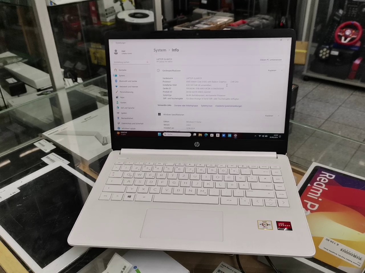 Hp Laptop 14s-fq0904ng AMD Gold 3150 | 8 | 00 GB Ram 256 GB SSD. Windows 11 Home Mit Ladegerät | Zustand: Sehr Gut