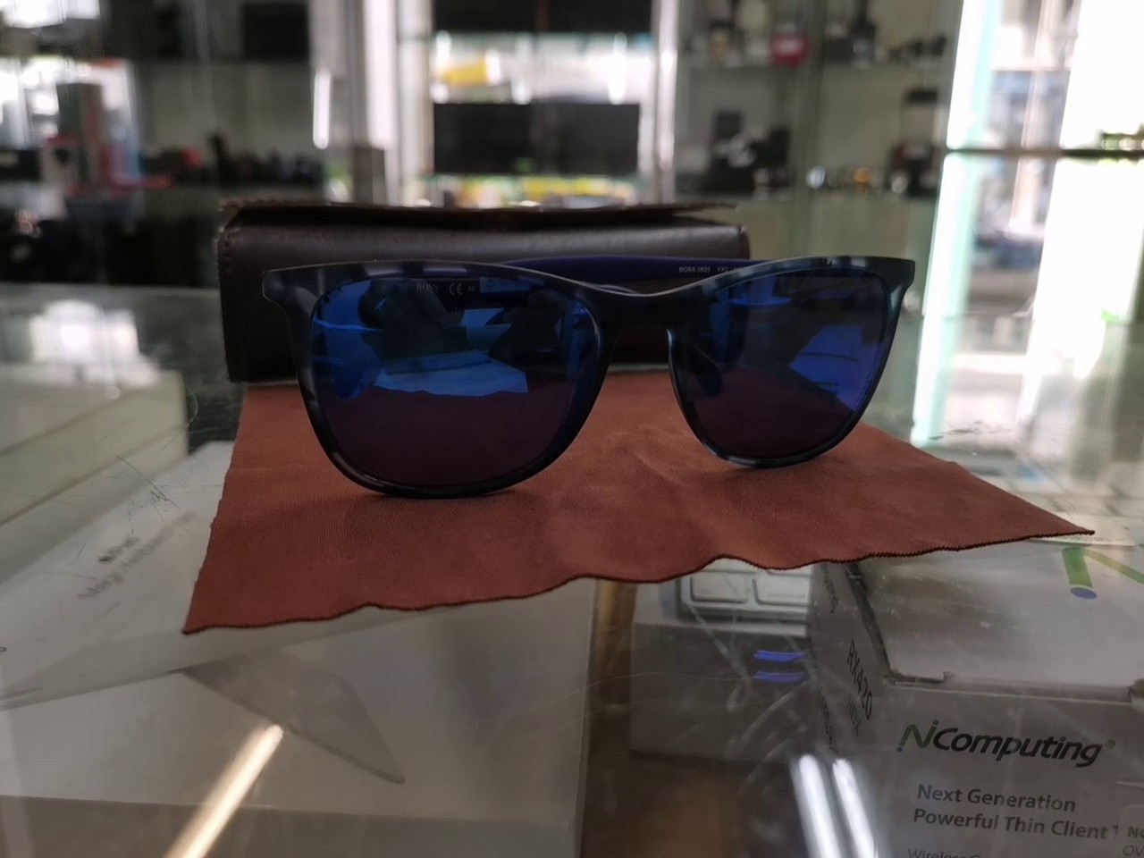Hier ist eine kurze Beschreibung der Hugo Boss Sonnenbrille mit Hülle: