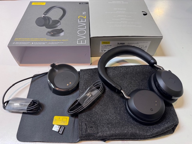 - Lieferumfang: Headset, Ladestation, USB-A Bluetooth-Adapter, USB-C-Kabel, Reiseetui.