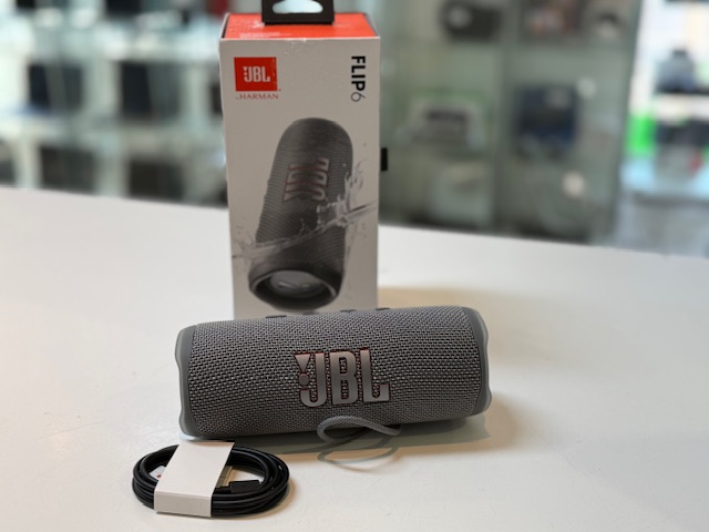 Neuwertiger JBL Flip 6 Bluetooth Lautsprecher in Grau. Das Gerät wurde nur einmal ausgepackt und befindet sich in einem neuwertigen Zustand mit vollständigem Zubehör und Originalverpackung (OVP). Er liefert leistungsstarken JBL Original Pro Sound und ist IP67-zertifiziert (wasserdicht und staubfest).