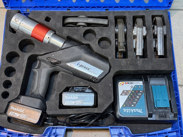 Die akkubetriebene Pressmaschine Klauke iPress KL-UAP3L ist ein vielseitiges Werkzeug für Pressarbeiten an Rohrsystemen. Sie liefert eine konstante lineare Schubkraft von ca. 32 kN und zeichnet sich durch einen schnellen Presszyklus aus. Der Pressbackenhalter ist um ca. 350° drehbar, was die Handhabung erleichtert.