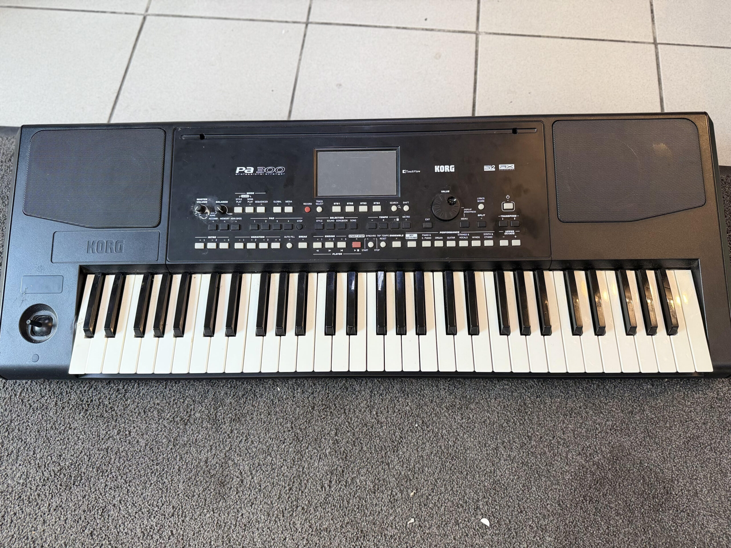Korg Pa300 Keyboard, Ladegerät, schwarze Tasche und Pedal inklusive. Master-Volume-Regler gebrochen, erste Taste geklebt. | Zustand: In Ordnung