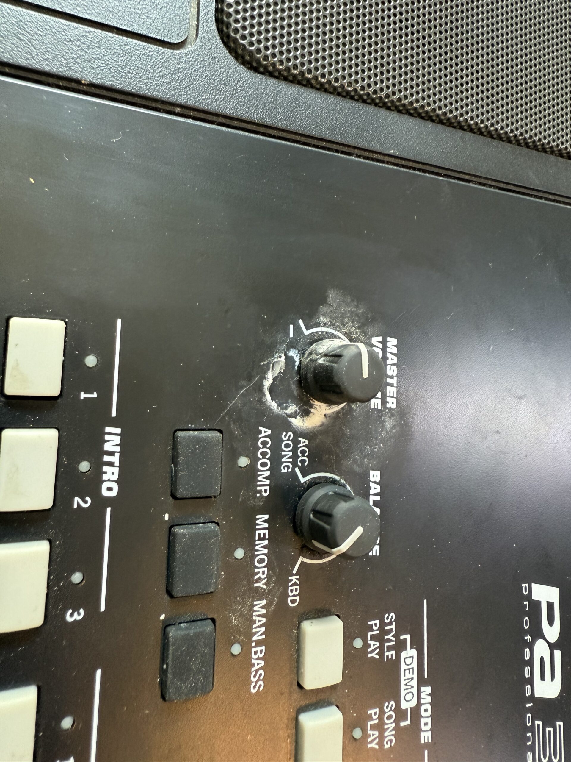 Zustand: Master-Volume-Regler gebrochen, erste Taste geklebt.