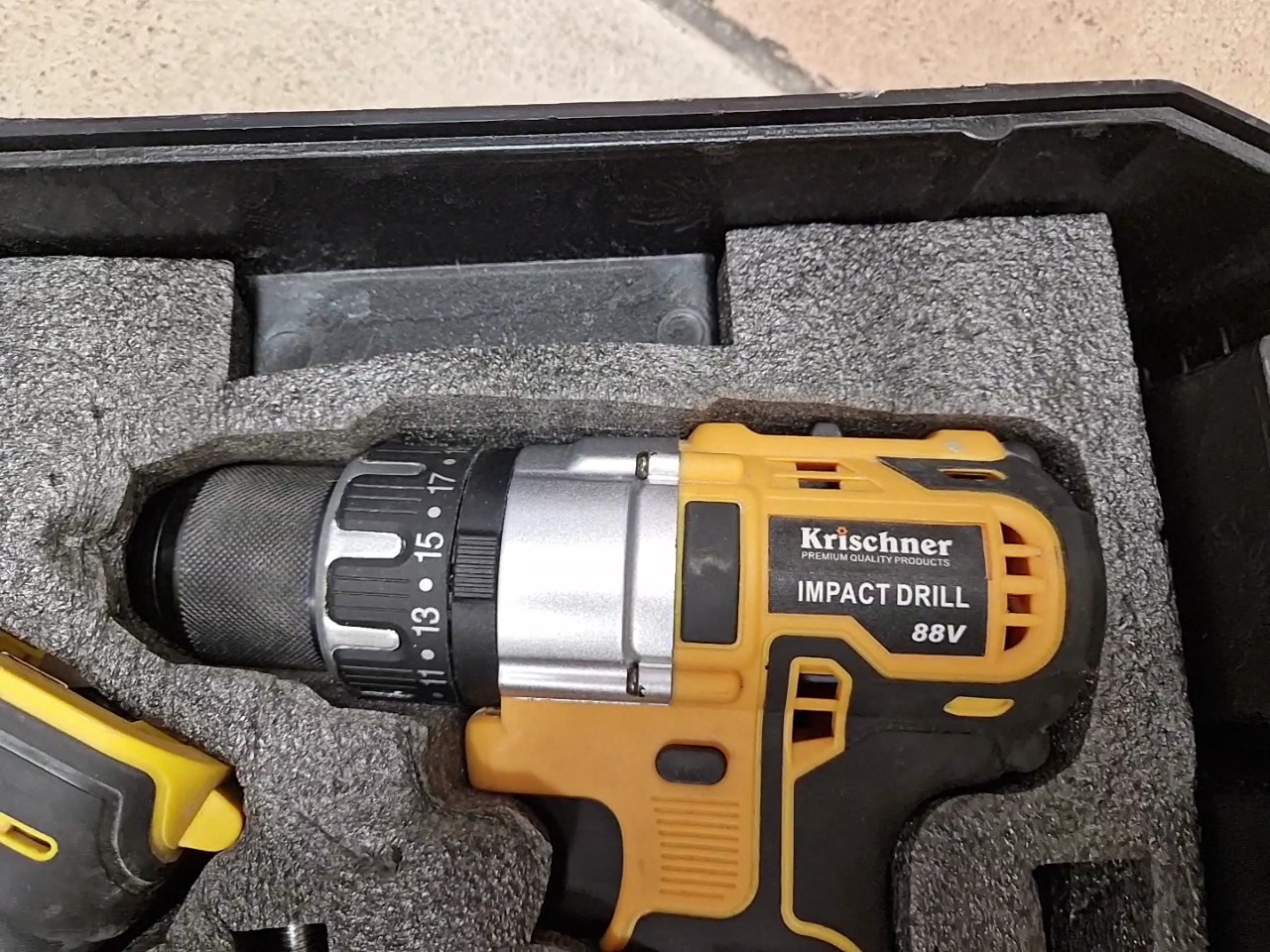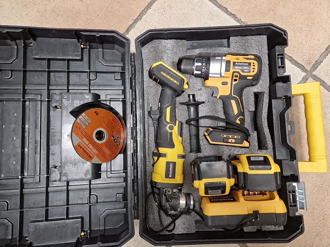 Krischner 88V Schlagbohrer/Schleifer Set, Akku-Set mit Schlagbohrer und Winkelschleifer, 2x 6.0Ah Akkus, Ladegerät, Koffer | Zustand: Sehr Gut