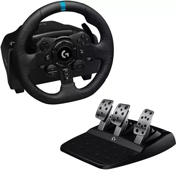Das Logitech G923 TRUEFORCE ist ein Hochleistungs-Rennlenkrad mit Pedalen für ein immersives Rennspielerlebnis auf PC, PlayStation 5 und PlayStation 4. Es verfügt über die TRUEFORCE-Technologie, die eine direkte Verbindung zur Spiel-Engine nutzt, um physikalische Kräfte in Echtzeit als realistische Vibrationen und Rückmeldungen zu simulieren. Das Lenkrad ist aus hochwertigen Materialien wie Leder gefertigt und bietet ein progressives Bremspedal sowie eine programmierbare Doppelkupplung für realistischere Starts.