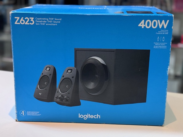 Das Logitech Z623 ist ein THX-zertifiziertes 2.1-Lautsprechersystem mit einer Gesamtleistung von 200 Watt. Es besteht aus zwei Satellitenlautsprechern mit je 35 Watt und einem 130-Watt-Subwoofer. Das System bietet dynamischen Sound mit kräftigen Bässen und ist ideal für Musik, Filme und Spiele.