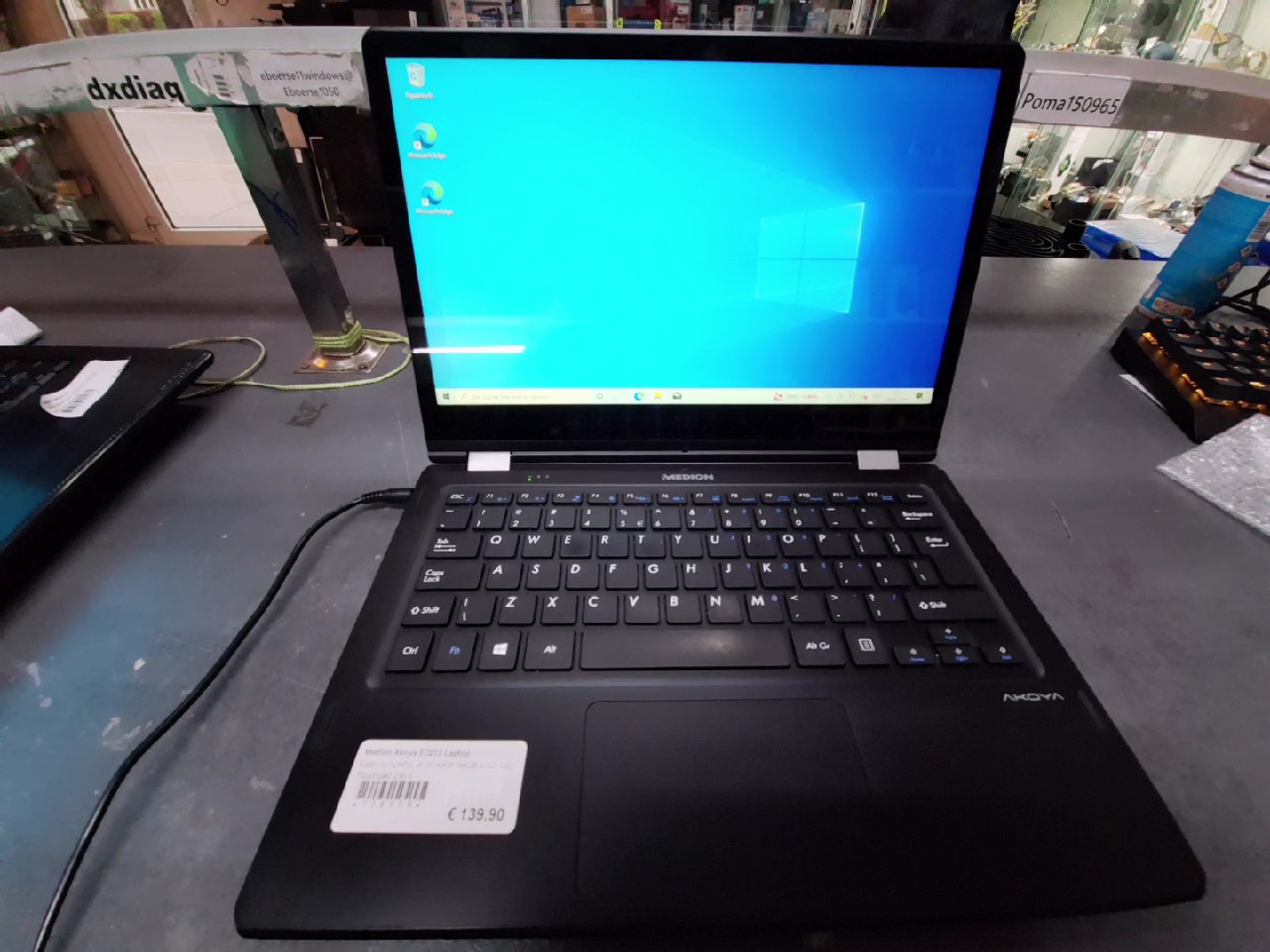 Flexibles Convertible Notebook der Medion Akoya E3213 Serie mit 13,3 Zoll Display, ideal für den mobilen Einsatz als Notebook oder Tablet. Ausgestattet mit einem Intel Celeron N3450 Prozessor, 4GB Arbeitsspeicher und einer schnellen 64GB SSD. Hinweis: Das Gerät wird mit defektem Akku, ohne Ladegerät und ohne Garantie verkauft.