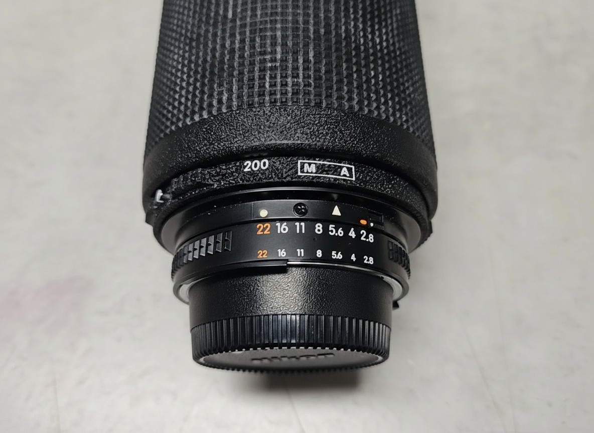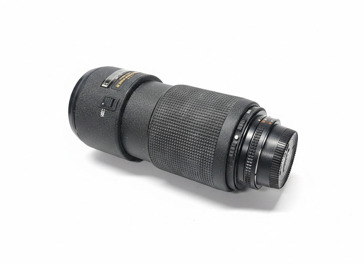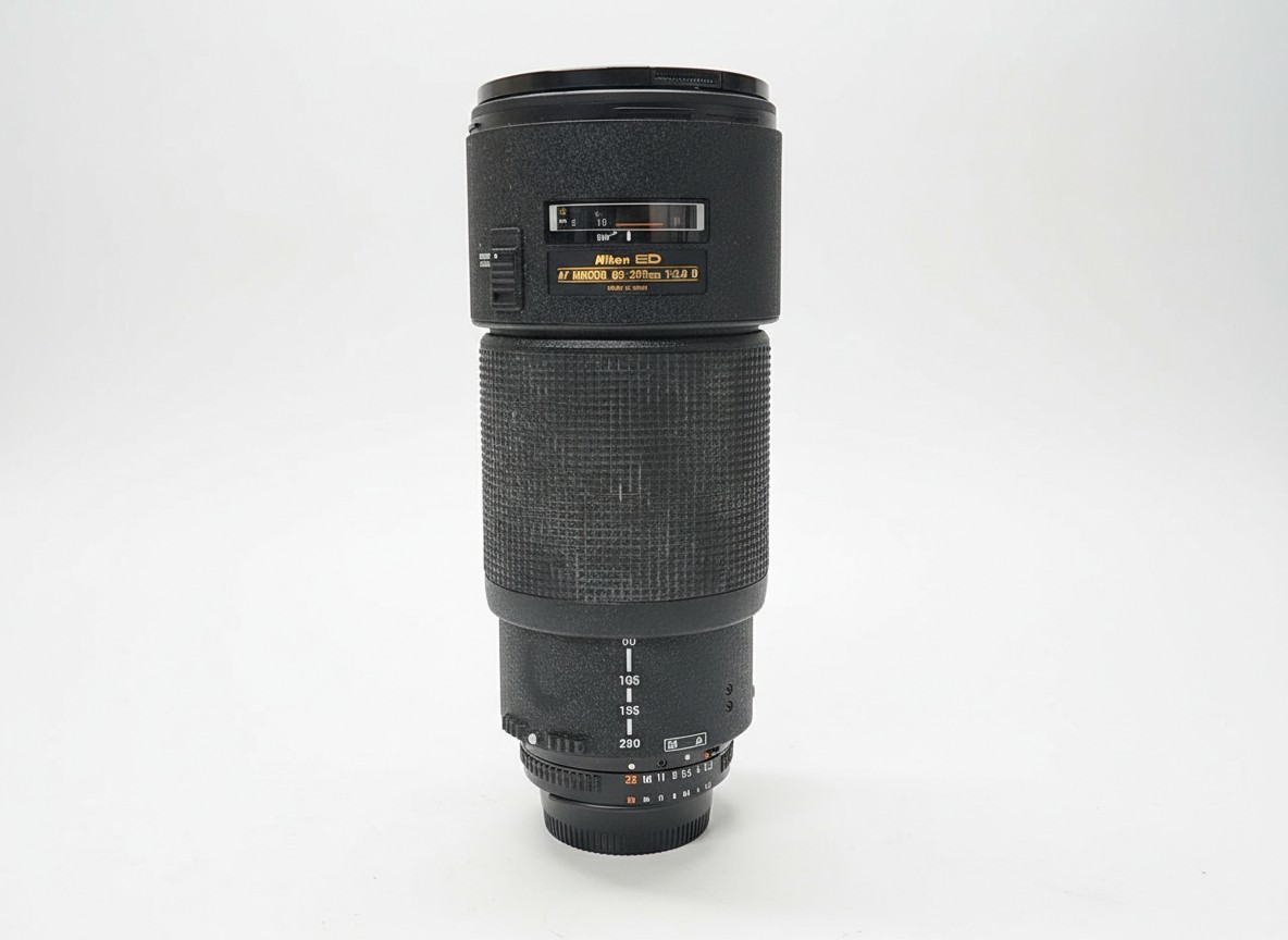 Professionelles Tele-Zoomobjektiv mit konstanter Lichtstärke f/2.8 über den gesamten Brennweitenbereich von 80mm bis 200mm. Dieses Modell verfügt über ein Schiebezoom-Design und integriert ED-Glaselemente (Extra-Low Dispersion) zur Korrektur chromatischer Aberrationen und zur Sicherstellung hoher Auflösung und Kontrastleistung, selbst bei Offenblende. Das Objektiv ist bekannt für seine robuste Bauweise und wird hier mit Abnutzung am Gummiring des Zoom-/Fokusrings angeboten.