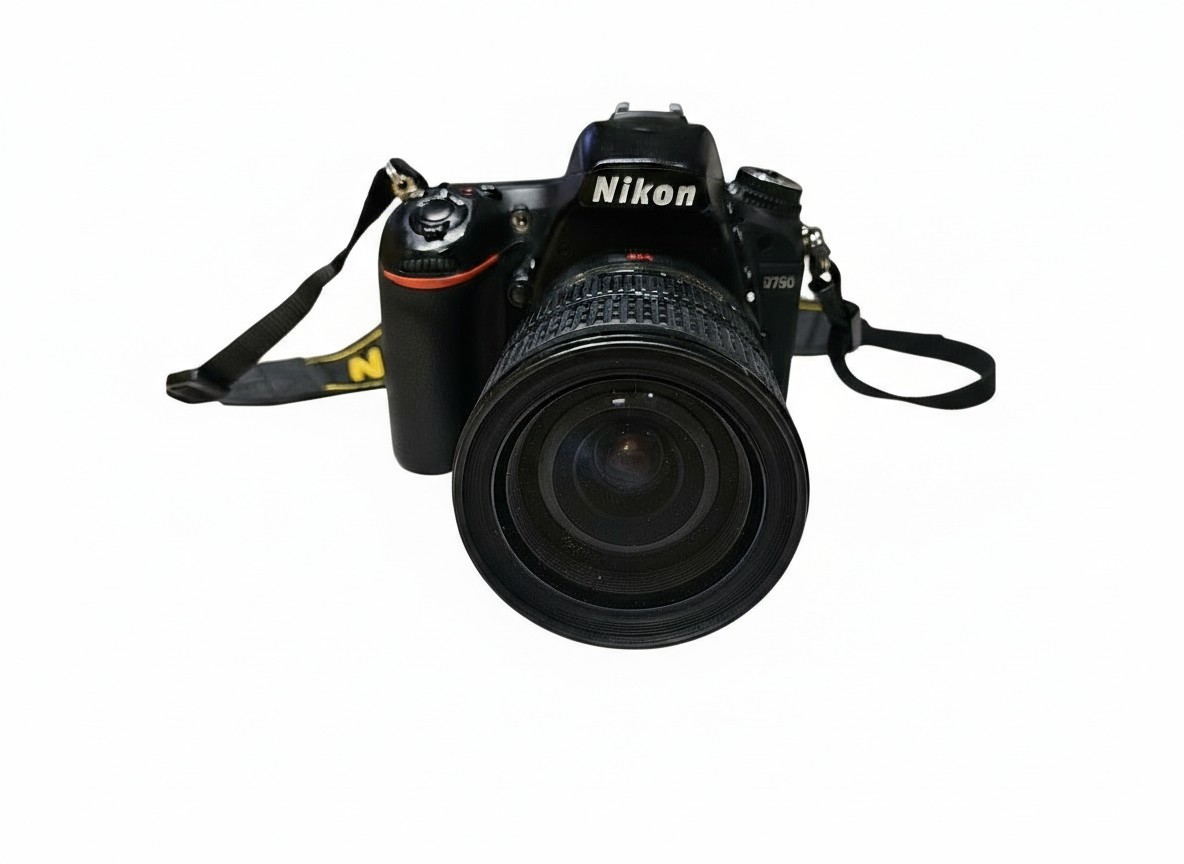 Gebrauchte Nikon D750 Vollformat-DSLR Kamera im Set mit dem vielseitigen AF-S NIKKOR 24-120mm f/4G ED VR Objektiv. Die Kamera verfügt über einen 24,3 Megapixel Vollformatsensor und ist bekannt für ihre hervorragende Leistung bei wenig Licht und ihren großen Dynamikumfang. Das Gehäuse ist mit einem Staubreduktionssystem ausgestattet. Der Zustand wird durch einen ausgefransten Gurt gekennzeichnet. Das Set beinhaltet den Akku, das Ladegerät und den Objektivdeckel.