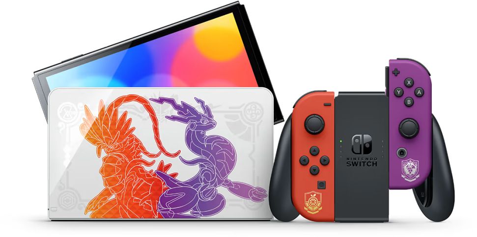 Die Nintendo Switch OLED – Pokémon: Karmesin & Purpur Edition ist eine Sonderedition der Nintendo Switch OLED-Konsole, die am 4. November erhältlich ist. Sie zeichnet sich durch ein Design aus, das von den Spielen Pokémon Karmesin und Pokémon Purpur inspiriert ist.