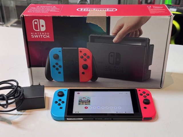 - Lieferumfang: Nintendo Switch-Konsole, Joy-Con (L) und Joy-Con (R), Nintendo Switch-Dock, Joy-Con-Grip, Netzteil, HDMI-Kabel, zwei Joy-Con-Handgelenksschlaufen