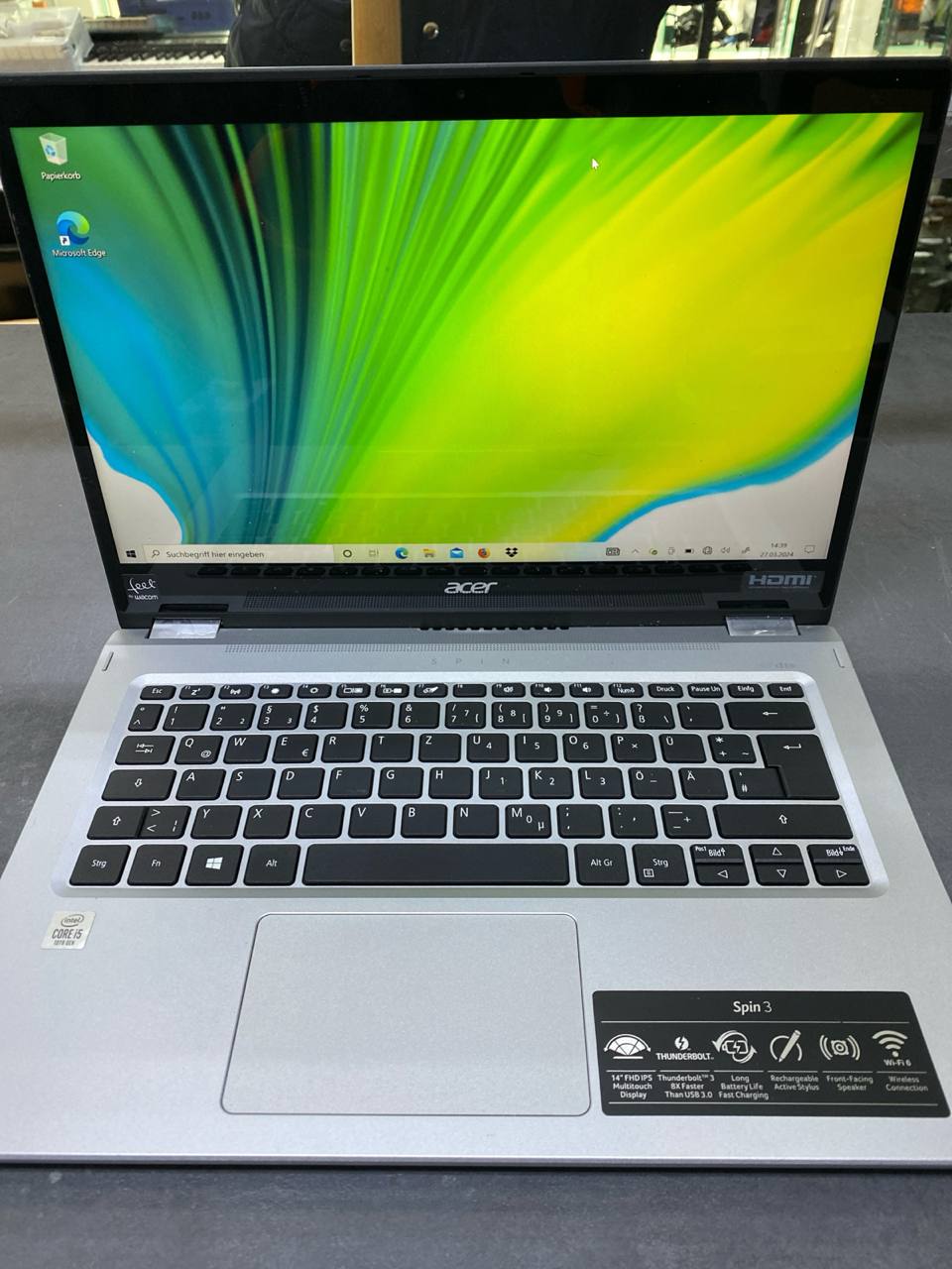 Notebook Acer Spin 3 silber | Core i5-1035G4 | 8GB RAM | 512GB SSD | DE | Zustand: Gut