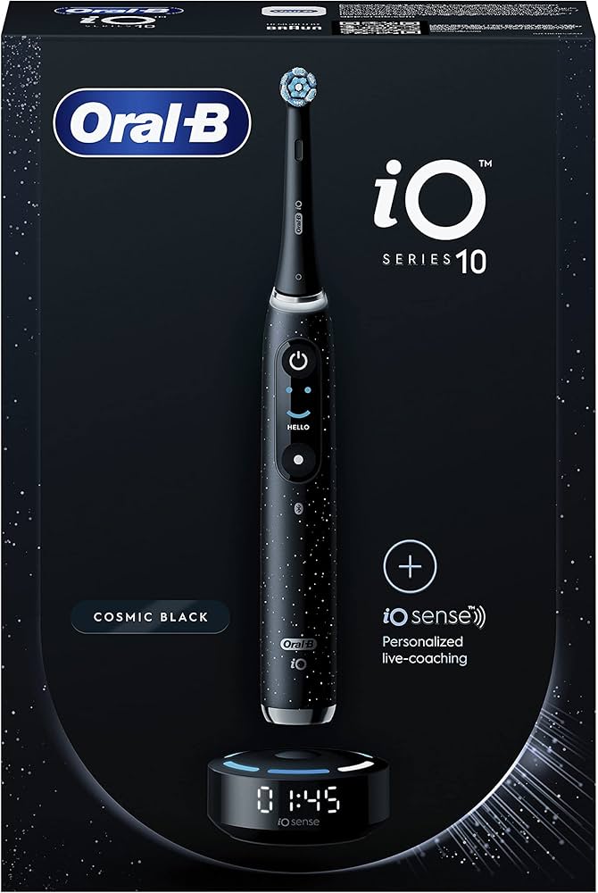 Die Oral-B iO 10 Cosmic Black ist eine elektrische Zahnbürste mit revolutionärer magnetischer iO-Technologie, die für ein professionelles Reinigungsgefühl sorgt. Sie kombiniert sanfte Mikrovibrationen mit dem einzigartigen, runden Bürstenkopf von Oral-B und entfernt bis zu 100% mehr Plaque als eine Handzahnbürste in nur einer Woche. Die Zahnbürste verfügt über einen interaktiven Farbdisplay und die smarte iO Sense Ladestation, die personalisiertes Live-Coaching für perfekte Putzabdeckung, -zeit und -druck bietet direkt über die Ladestation ohne Öffnen der App. Dieses Modell ist neu, wird jedoch ohne Originalverpackung geliefert und beinhaltet die iO Sense Ladestation sowie weiteres Zubehör.