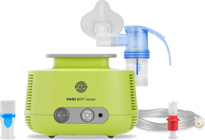Das PARI BOY Junior Inhalationssystem ist ein Kompressor-Inhalationsgerät, das speziell für die effektive Therapie der unteren Atemwege bei Babys ab dem ersten Lebensmonat und Kleinkindern entwickelt wurde. Es ermöglicht kurze Inhalationszeiten und eine hohe Lungendeposition dank des PARI LC SPRINT JUNIOR Verneblers mit variablem Tröpfchenspektrum durch austauschbare Düsenaufsätze (rot für extra feine Tröpfchen für Babys, gelb für etwas größere Tröpfchen für Kleinkinder). Das integrierte PIF-Control unterstützt dabei, eine korrekte und effektive Inhalationstechnik zu erlernen.