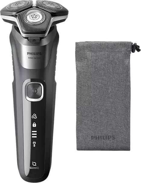 Der Philips S5887/10 Series 5000 Elektrische Nass- und Trockenrasierer bietet eine leistungsstarke und hautschonende Rasur dank SteelPrecision Klingen und SkinIQ Technologie. Die flexiblen 360°-Scherköpfe passen sich optimal den Gesichtskonturen an und sorgen für maximalen Hautkontakt. Er kann sowohl für eine Trockenrasur als auch für eine erfrischende Nassrasur unter der Dusche verwendet werden.