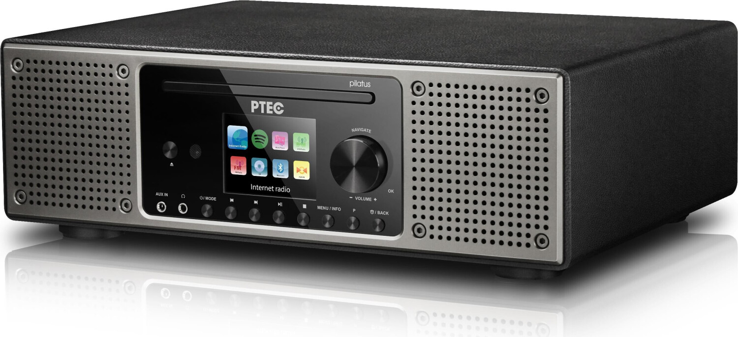 Das PTEC Pilatus II ist ein vielseitiges Stereo-Digitalradio mit elegantem Design in hochwertiger Lederoptik und Anthrazit-schwarzer Front. Es bietet eine breite Palette an Wiedergabemöglichkeiten, von klassischem UKW-Radio über digitalen DAB+-Empfang bis hin zu Internetradio mit Zugriff auf über 40.000 Sender weltweit. Integriert sind ein CD-Player, Spotify Connect, Bluetooth für kabelloses Audio-Streaming und ein USB-Anschluss. Gesteuert wird das Gerät komfortabel über die mitgelieferte Fernbedienung oder die UNDOK App.