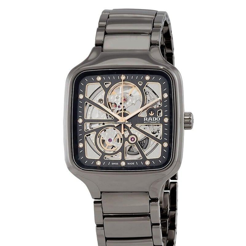 Rado True Square Automatic Open Heart Black, 38 mm Gehäuse aus schwarzer High-Tech-Keramik, Automatikwerk Kaliber R734, 80 Stunden Gangreserve | Zustand: Gut | Farbe: schwarz