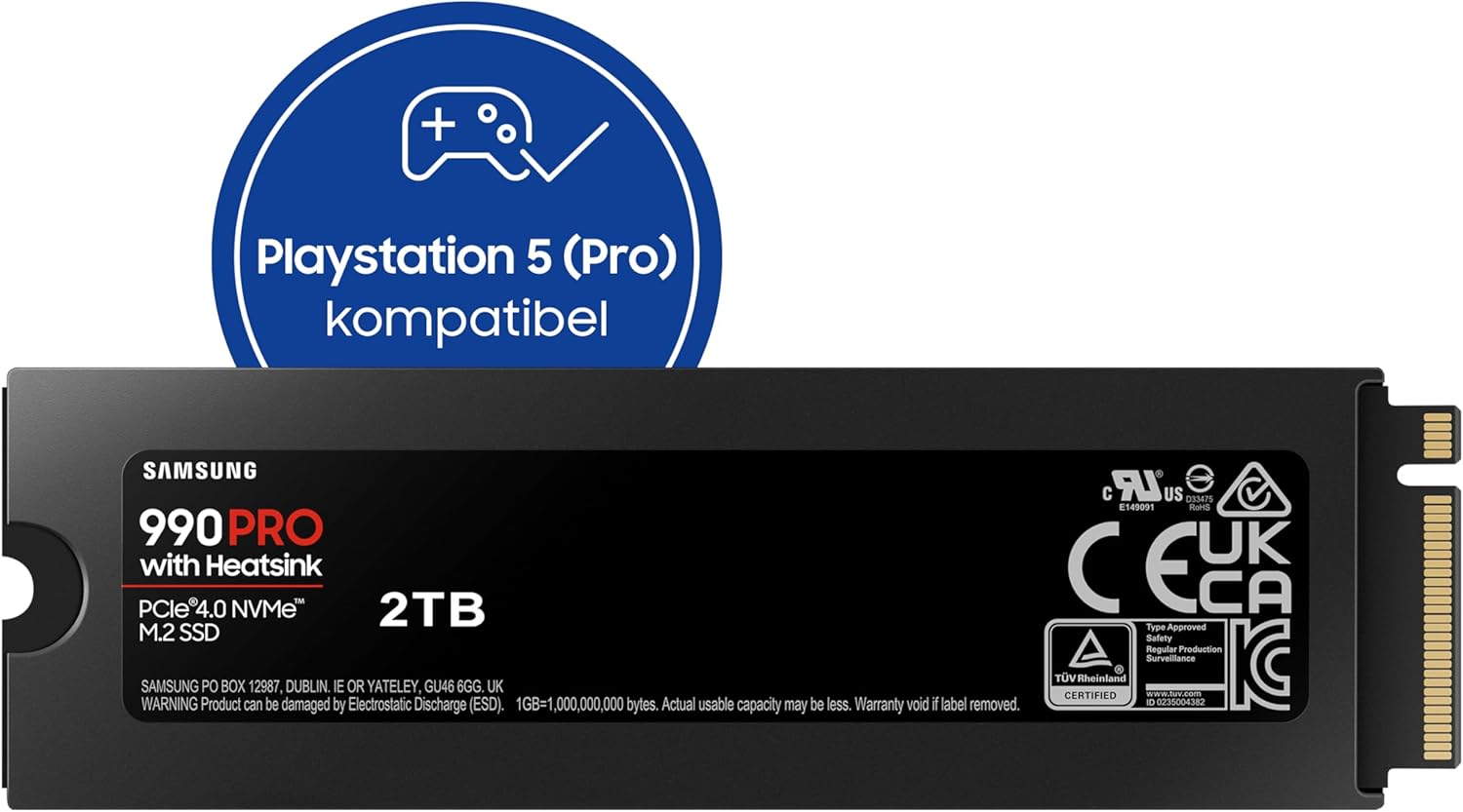 Ultraschnelle 2 TB NVMe M.2 SSD der Samsung 990 PRO Serie, ausgestattet mit einem integrierten Heatsink für optimale thermische Regulierung und garantierte Leistung, ideal für die Speichererweiterung der PlayStation 5 sowie für High-End-PCs.