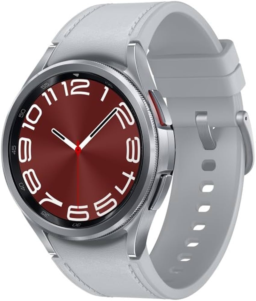Die Samsung Galaxy Watch 6 Classic LTE in Silber mit 43 mm Gehäusedurchmesser kombiniert elegantes, traditionelles Uhrendesign mit modernster Smartwatch-Technologie. Das Gehäuse aus Edelstahl wird durch ein kratzfestes Saphirglas geschützt und bietet eine intuitive Bedienung über die drehbare Lünette, den Touchscreen und zwei Seitentasten. Dank LTE-Konnektivität können Sie telefonieren und auf Apps zugreifen, ohne Ihr Smartphone dabeihaben zu müssen. Die Uhr unterstützt einen bewussten Lebensstil durch umfassende Gesundheits- und Fitness-Tracking-Funktionen und läuft mit Wear OS powered by Samsung.