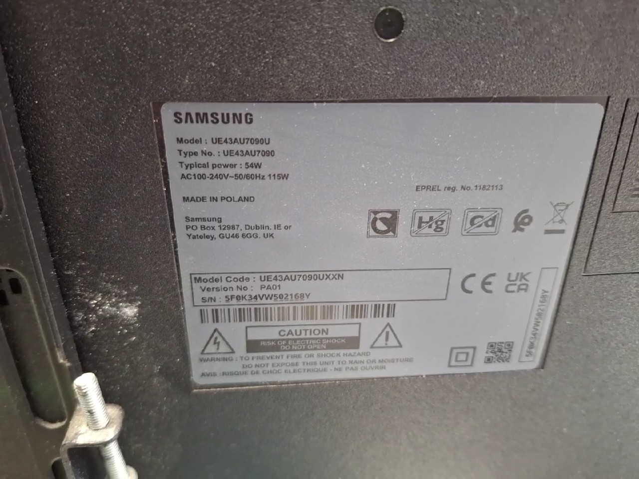 Samsung UE43AU7090U 43 Zoll, 4K UHD Smart TV, Farbe Schwarz, Fernbedienung | Zustand: Gut