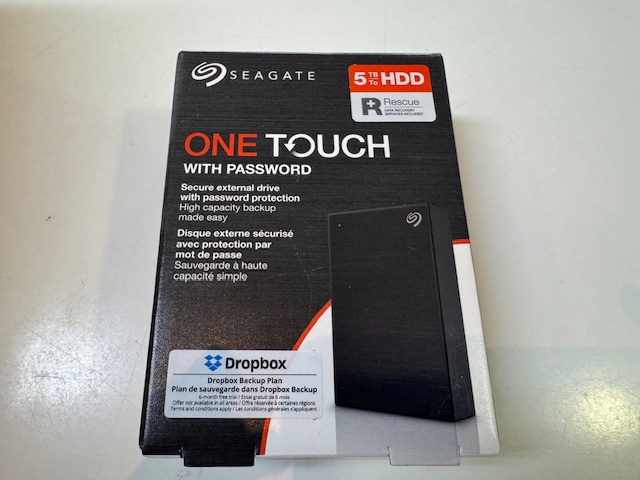 Die Seagate One Touch Portable HDD mit Passwort bietet mit 5 TB ausreichend Speicherplatz für Fotos, Videos, Dokumente und mehrDas schlanke, schwarze Design macht sie zu einem attraktiven und tragbaren Speichergerät