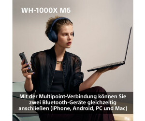 Neuwertige Sony WH-1000XM6 Over-Ear Kopfhörer in Schwarz mit herausragender aktiver Geräuschunterdrückung (ANC) und Unterstützung für Multipoint-Verbindung. Diese Kopfhörer bieten erstklassigen Klang und eine überragende Akkulaufzeit, ideal für Musikgenuss und Telefonate mit gleichzeitiger Verbindung zu zwei Geräten. Die Originalverpackung (OVP) und das zugehörige Zubehör sind enthalten.